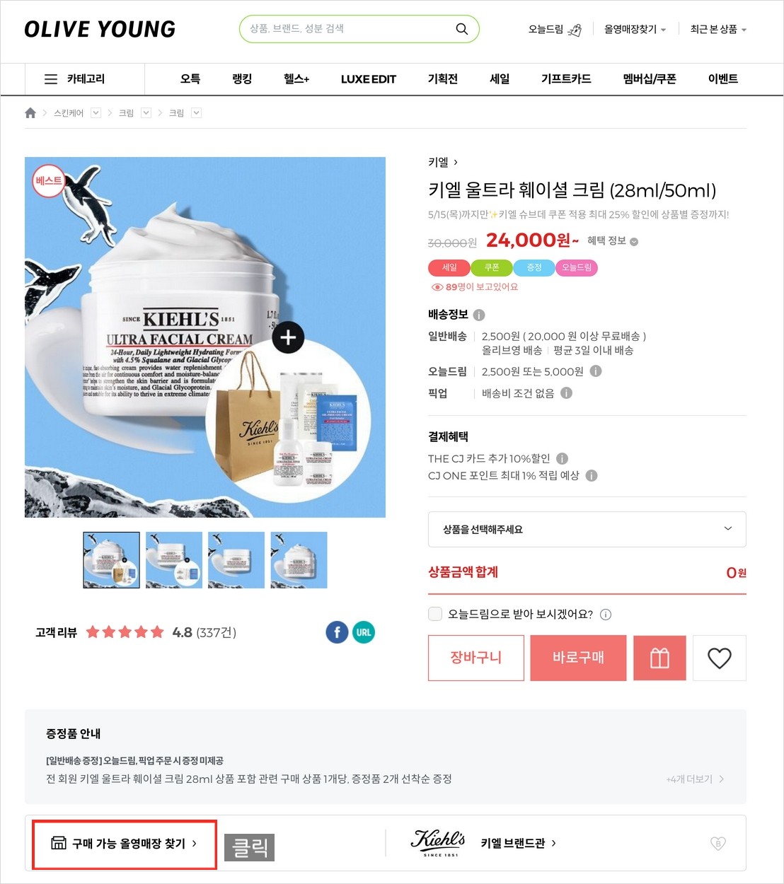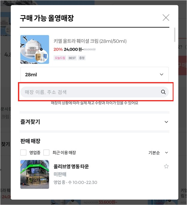 📌 올리브영 공식 홈페이지에서 재고 확인하기